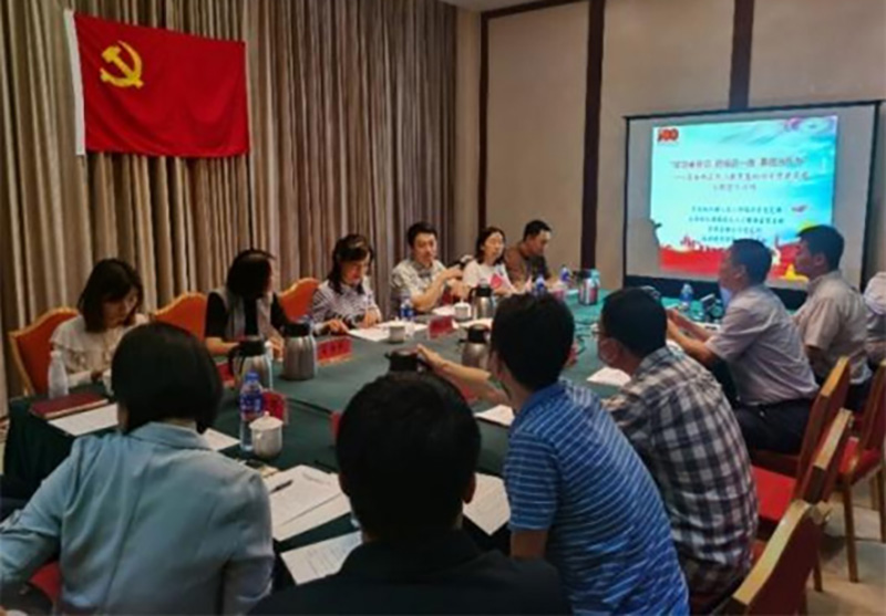 參觀后,4 個黨支部齊聚會議室,由濱海新區(qū)區(qū)委組織部高層次人才服務(wù)室黨支部書記劉建輝主持召開了座談會。宏亞公司黨支部書記岳琳領(lǐng)學(xué)了習(xí)近平總書記關(guān)于加強職業(yè)教育的重要指示批示精神,介紹了全國先進地區(qū)職業(yè)教育考察情況及項目進展情況。濱建投項管公司黨支部書記楊程交流了濱海新區(qū)黃港生態(tài)區(qū)職業(yè)教育產(chǎn)業(yè)園入園院校進展情況,劉建輝介紹了濱海新區(qū)職業(yè)教育基地建設(shè)展望。在交流研討中,宏亞公司咨詢?nèi)坎块L高淑玲回答了大家比較關(guān)心的入園院校數(shù)量、政府政策支撐、資金平衡方式等方面的情況。