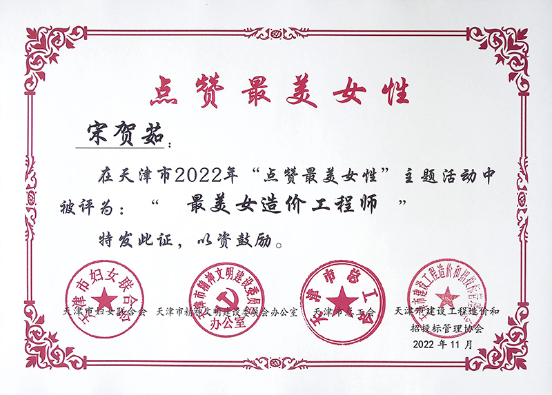在天咨發(fā)展中盡展巾幗風采——天咨下屬泛亞公司宋賀茹榮獲“最美女造價工程師”稱號