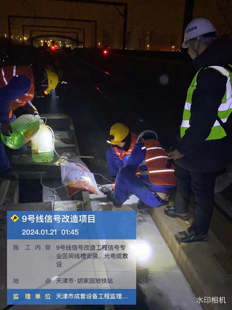 由于本工程采用邊運(yùn)營(yíng)邊改造方式,施工只能在夜間停車后進(jìn)行。項(xiàng)目團(tuán)隊(duì)必須每天21點(diǎn)集合,奔赴各個(gè)站點(diǎn),至次日凌晨4點(diǎn)前后才能出站返回。施工站點(diǎn)大多數(shù)為高架站,站與站之間最遠(yuǎn)距離9千米,監(jiān)理人員在站內(nèi)旁站徒步到達(dá)施工點(diǎn)位,有時(shí)幾近1小時(shí)。項(xiàng)目施工的條件艱苦、工期緊迫、質(zhì)量標(biāo)準(zhǔn)高。12月中旬,又恰逢天津市幾年不遇的一場(chǎng)大雪,氣溫降到近10年歷史同期極值。在如此惡劣的氣候條件下,項(xiàng)目監(jiān)理團(tuán)隊(duì)不畏嚴(yán)寒、嚴(yán)格現(xiàn)場(chǎng)巡查和驗(yàn)收標(biāo)準(zhǔn),堅(jiān)守和奮戰(zhàn)每一個(gè)夜晚,在寒冷的冬季展現(xiàn)了每個(gè)人職業(yè)和專業(yè)的敬業(yè)精神。天津咨詢工會(huì)和第三事業(yè)部黨總支積極關(guān)心項(xiàng)目一線員工的冷暖,及時(shí)籌備棉大衣、保溫杯、厚手套、發(fā)熱鞋墊、暖寶寶等御寒物資開展慰問(wèn),前后臺(tái)齊心協(xié)力。