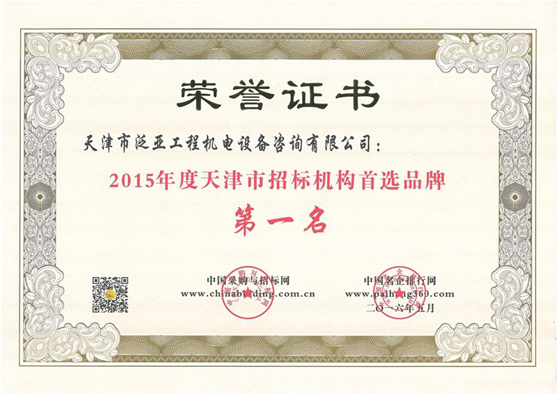 2015年度天津市招標(biāo)機(jī)構(gòu)首選品牌第一名