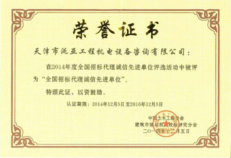 2014年度全國招標(biāo)代理誠信先進(jìn)單位
