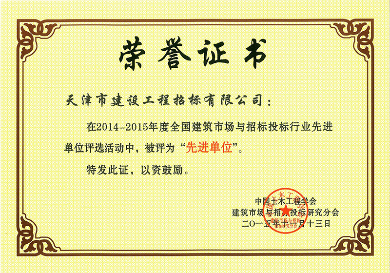 14-15年全國建筑市場與招標(biāo)投標(biāo)行業(yè)先進(jìn)單位