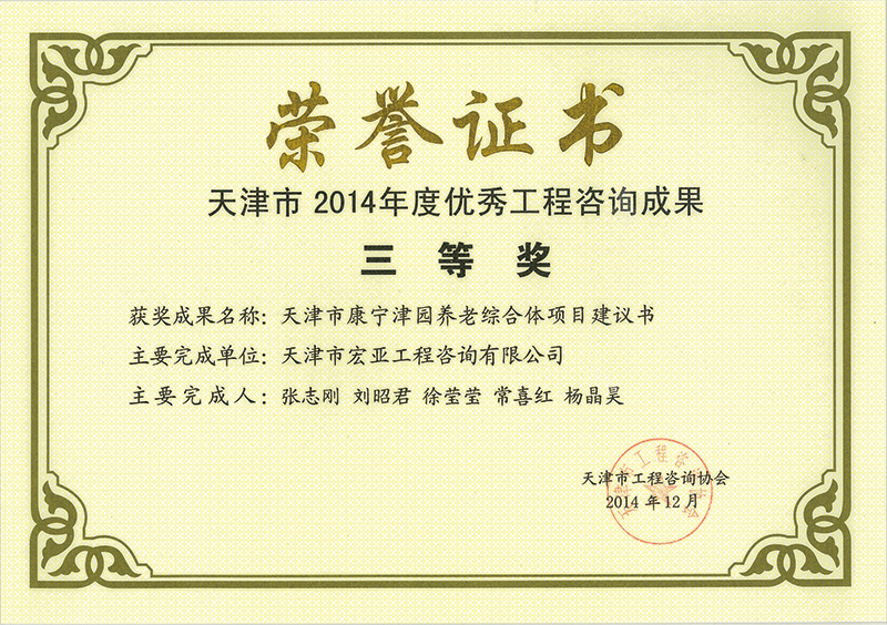 優(yōu)秀咨詢(xún)成果三等獎(jiǎng)(2014)
