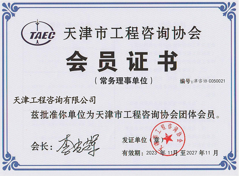 天津市工程咨詢協(xié)會(huì)會(huì)員證書