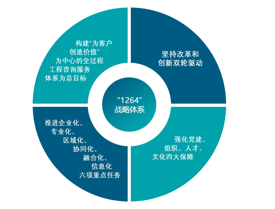 以習(xí)近平新時代中國特色社會主義思想為指導(dǎo),緊緊把握新發(fā)展格局歷史機遇,堅定不移貫徹新發(fā)展理念,以推動高質(zhì)量發(fā)展為主題,以市場需求為導(dǎo)向,全力實施“1264”戰(zhàn)略體系,即以構(gòu)建“為客戶創(chuàng)造價值”為中心的全過程工程咨詢服務(wù)體系為總目標(biāo),堅持改革和創(chuàng)新雙輪驅(qū)動,全面推進企業(yè)化、專業(yè)化、區(qū)域化、協(xié)同化、融合化、信息化等六項重點任務(wù),強化黨建、組織、人才、文化四大保障,將天咨公司全力打造成為京津冀區(qū)域領(lǐng)先的工程咨詢品牌企業(yè)和上海建科集團區(qū)域業(yè)務(wù)發(fā)展平臺。